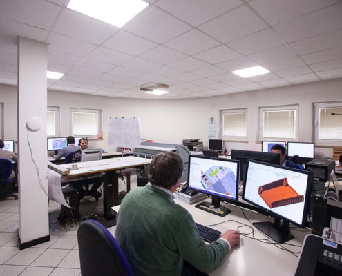 Das Aushängeschild des Unternehmens Tecnostampi ist zweifelsohne sein Konstruktionsbüro, in dem seine Techniker eine Produktstudie des herzustellenden Bauteils und Werkzeugs durchführen und gemeinsam mit dem Kunden dessen Anforderungen definieren, um leistungsstarke Lösungen zu entwickeln.